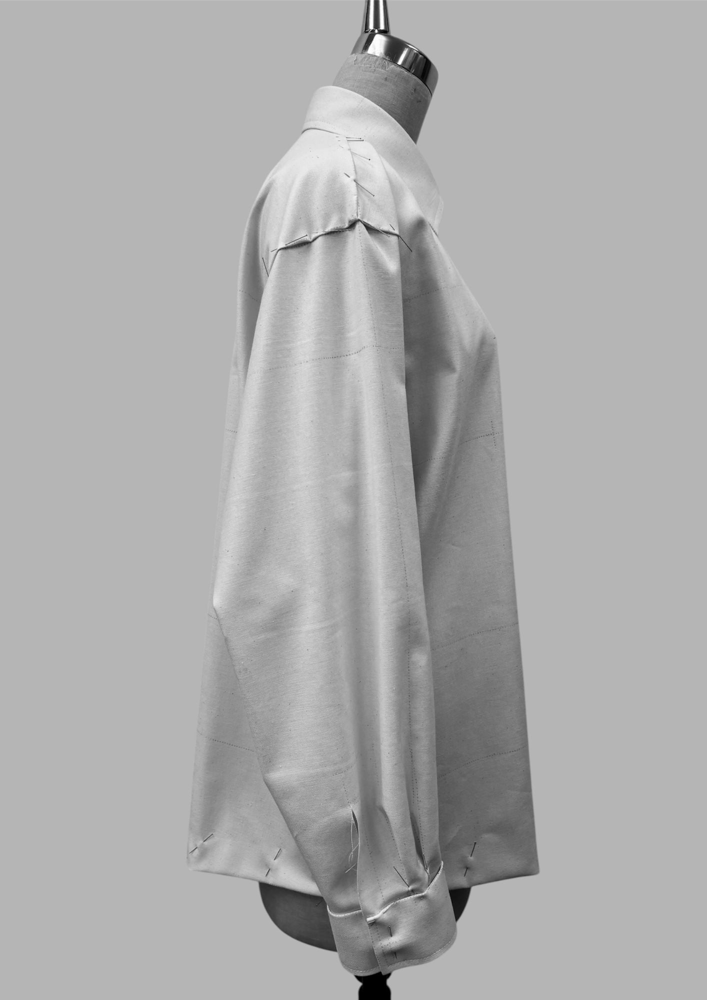 タイトシルエットシャツをベースに、肩傾斜、前後幅、鎌深、袖幅にたっぷりとゆとり